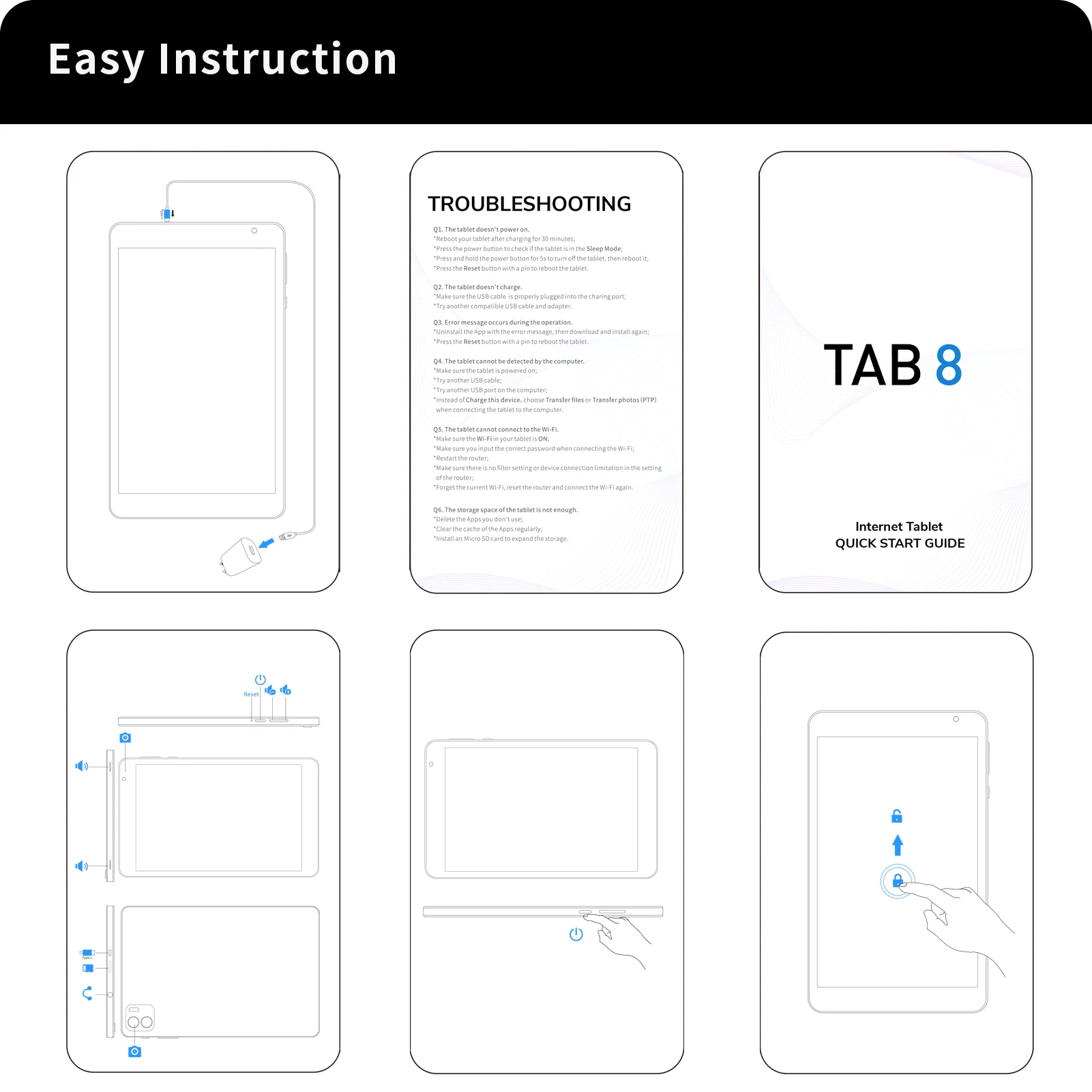 1x 8 ”tablet pc /1x carregador/1x cabo/1 guia do usuário